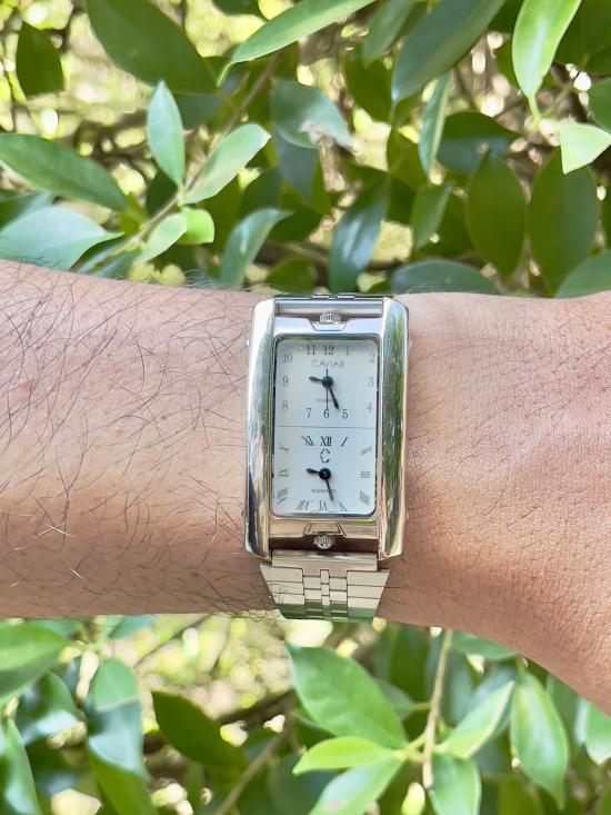 นาฬิกา แบรนด์ caviar ทรง Tank สุดคลาสสิก ฟังก์ชัน Dual Time 2 หน้าปัด แปลกตา