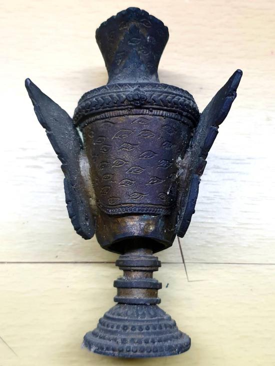 รายละเอียด หลวงปู่กาหลงเขี้ยวแก้ว วัดเขาแหลม จ.สระแก้ว เศียรปู่ฤาษีสิงห์สมิงพราย ขนาดตั้งหน้ารถ No.๑๙๕๖ เนื้อสัมฤทธิ์ ไหว้ครู 50 สภาพผิวหิ้ง