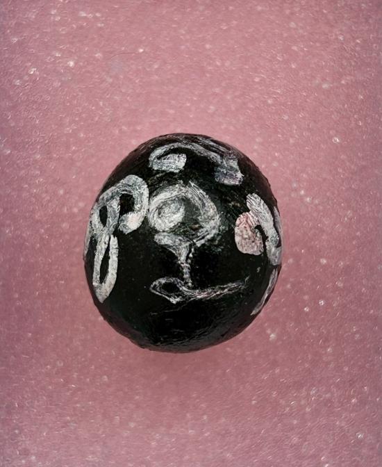 ลูกอมครั่งมนต์พระกาฬ หลวงพ่อวิชัย วัดหัวเด่น (เนื้อครั่งเดียวกับที่ติดหลังเหรียญมนต์พระกาฬ) หมายเลข "36" จารมือหมึกขาว |