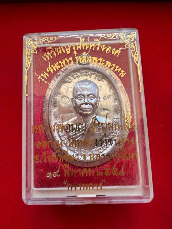 เคาะเดียว ...เหรียญหลวงปู่บุญ วัดปอแดง จ.นครราชสีมา รุ่นชนะมาร ปี2558 เนื้อเงินไม่ตัดปีก โค๊ตกรรมการ พิเศษ 9 รอบ หมายเลข 51 (น้ำหนัก 19.91 g ) พร้อมกล่อง