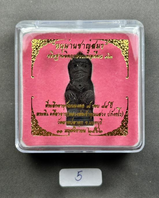 หนุมานเนื้อไม้พญางิ้วดำ (ทูโทน) "พิมพ์หน้ากระบี่" แผ่นโค้ดหมายเลขนาคแท้ เลข 5 หลวงพ่อแสวง วัดลาดปลาดุก (หลวงพ่ออ่างและเกจิเมืองนนท์ร่วมเสก) |