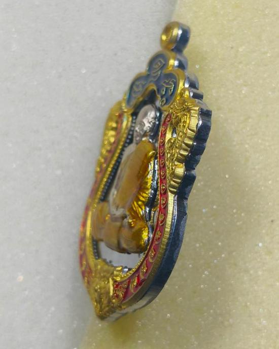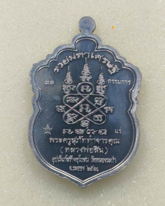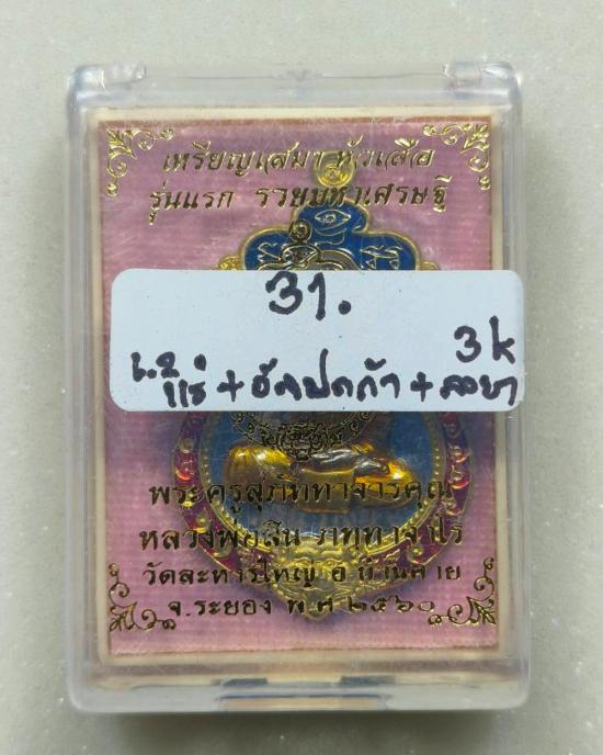 เสมาหัวเสือรุ่นแรก รวยมหาเศรษฐี(กรรมการ)เนื้อแร่หน้าอัลปาก้าขอบฝาบาตรลงยา 3 สี หลวงพ่อสิน วัดละหารใหญ่ มีกล่อง แดงเคาะแรก |