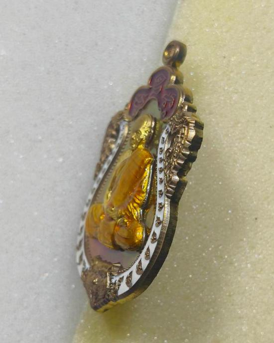 เสมาหัวเสือรุ่นแรก รวยมหาเศรษฐี(กรรมการ)เนื้อชนวน หน้าทองฝาบาตร ลงยา 3 สี หลวงพ่อสิน วัดละหารใหญ่ มีกล่อง แดงเคาะแรก |