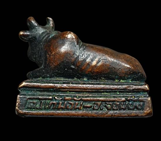 วัตถุมงคลอีกรุ่นหนึ่งของเมืองราชบุรี ไว้กวักเงิน กวักทรัพย์ ไม่ค่อยได้มีให้พบเห็นกันบ่อยมากนัก """พระโคกวักเงิน วัดเขาแด น อ.จอมบึง จ.ราชบุรี """ เนื้อโลหะ ขนาดฐาน 2.3 x 1.5 ซม คับ |