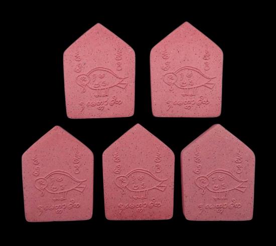 วัดใจ 5องค์ ขุนแผนสาริกา มหาเสน่ห์ อาจารย์ประคอง รุ่นเจริญ เนื้อชมพู ใต้ฐานตอกโค๊ต รุ่นนี้ผสมผงพรายกุมาร หลวงปู่ทิม วัดละหารไร่ |