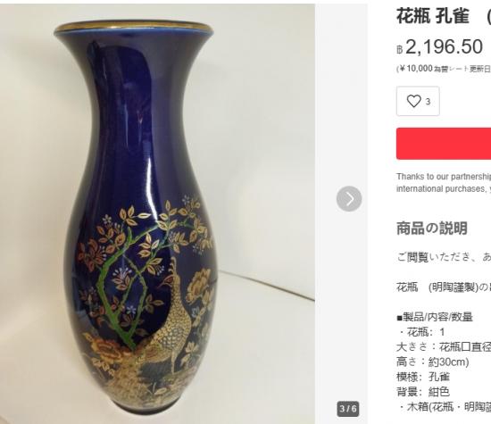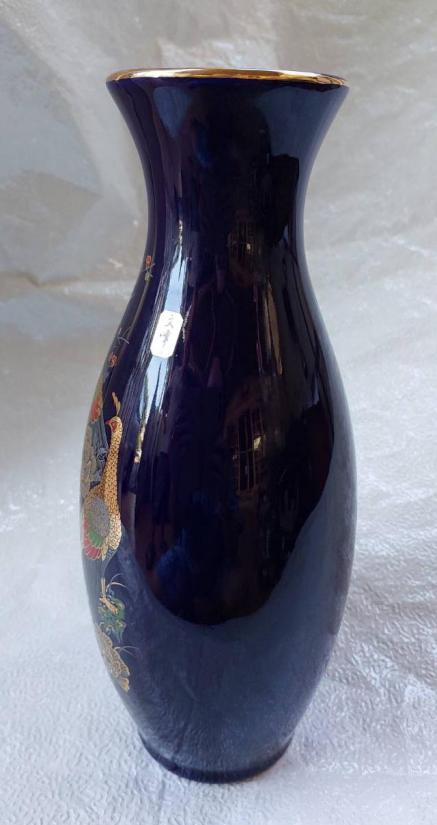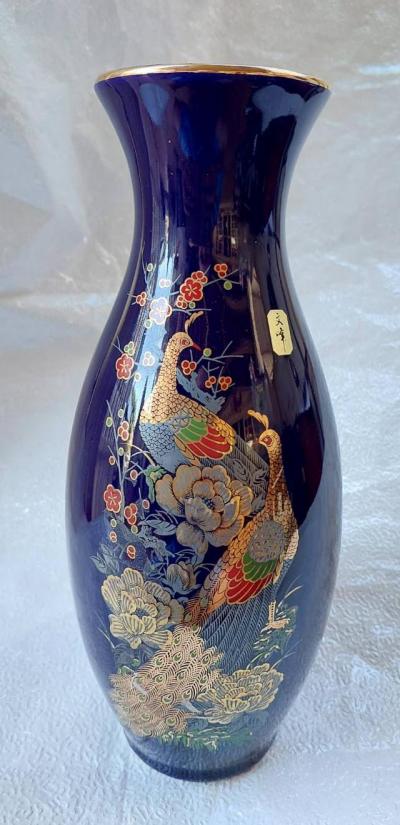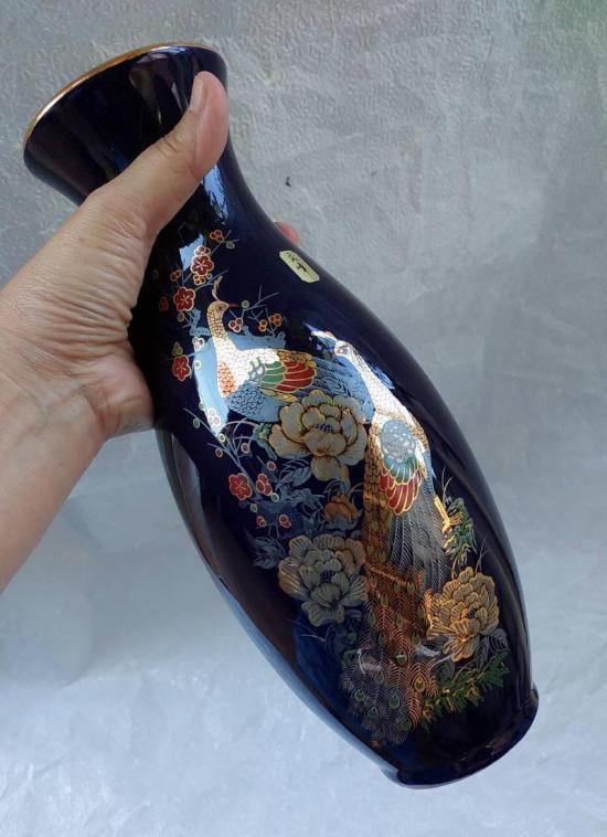 ***วัดใจ***แจกันเซรามิกญี่ปุ่น ของสะสม ปากกว้าง 3.5 นิ้ว สูง 12 นิ้ว ลายนกยูงเส้นทอง