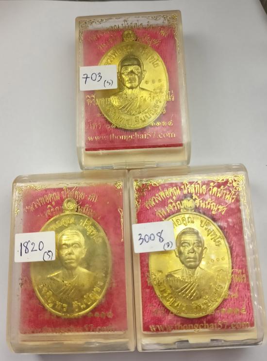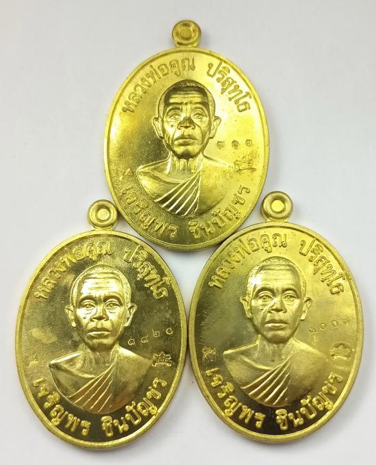 (จัดชุด3องค์)เหรียญ"เจริญพร ชินบัญชร" หลวงพ่อคูณ วัดบ้านไร่ ปี57 เนื้อทองฝาบาตร เบอร์ 703/1820/3008 พร้อมกล่องครับ (S)