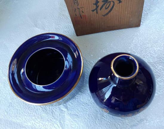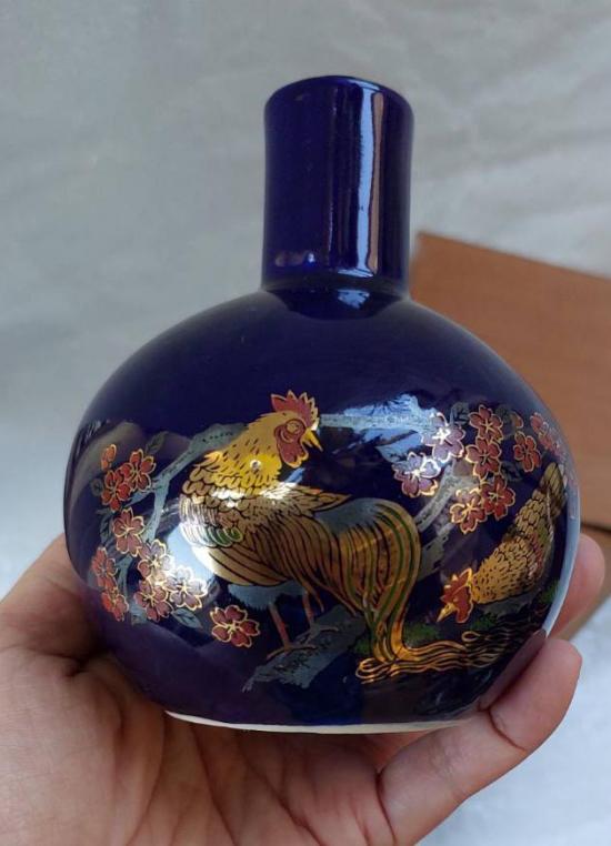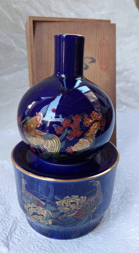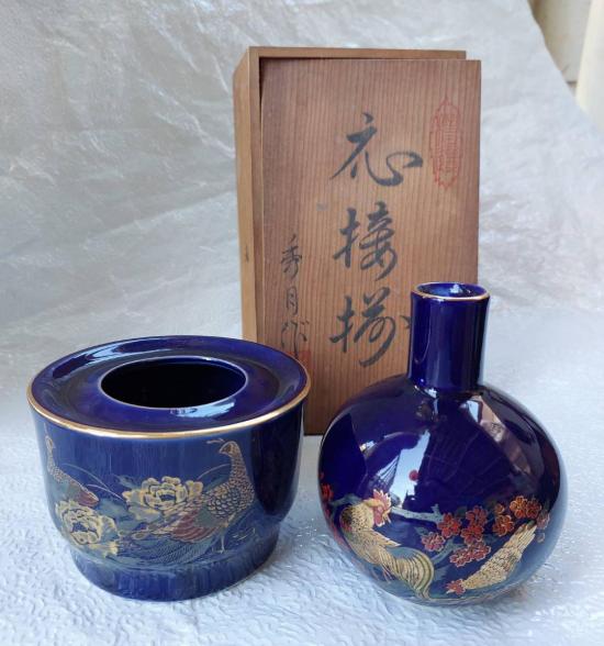 ***วัดใจ***ชุดแจกันเซรามิกญี่ปุ่น ของสะสม 2ใบ สูง 4-3.5 นิ้ว ลายนกยูงเส้นทองกับไก่ฟ้า พร้อมกล่องไม้