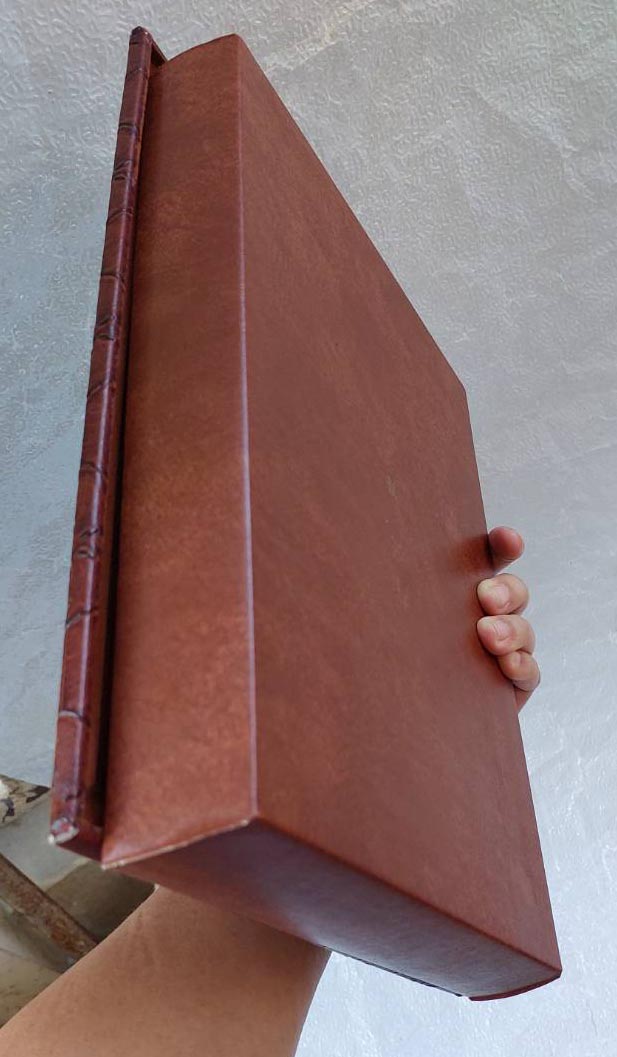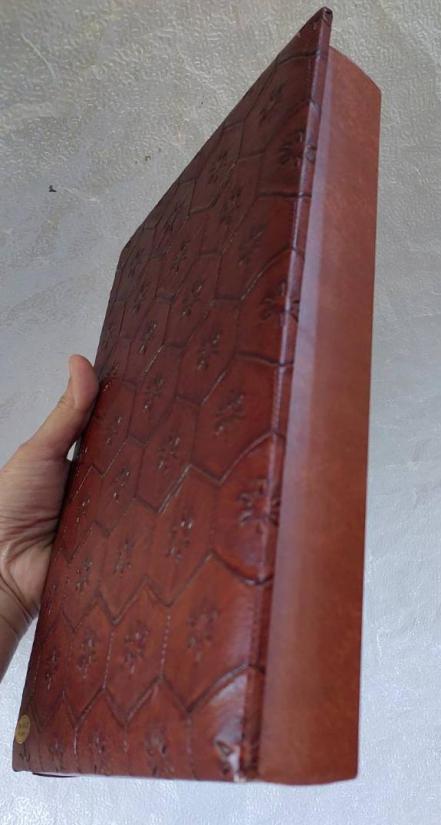 กล่องไม้หุ้มหนังแท้ตอกลายกระดองเต่าทรงกลม ขนาด 32*22 สูง 4.5 ซม.จาก Kanogiyaman-Vintage Japan Genuine Leather by Kanogiyaman หนังตอกลายสวยงาม