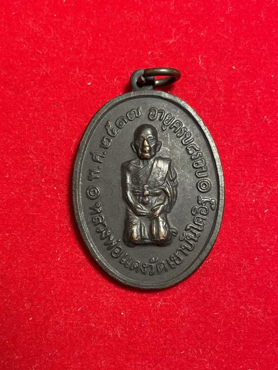 เนื้อทองแดงรมดำ สภาพสวยกริ๊บ เหรียญคุกเข่า "หลวงพ่อแดง" หรือ "พระครูญาณวิลาศ" วัดเขาบันไดอิฐ รุ่นสุดท้าย ปี 2517 เหรียญรุ่นนี้หลวงพ่อแดง ท่านสร้างปี 2516 เพื่อทำแจกในวันคล้ายวันเกิดปี 2517 แต่ท่านมรณะภาพเสียก่อน เหรียญนี้จึงเป็นเหรียญสุดท้ายที่หลวงพ่อปลุกเสก และเป็นเหรียญที่มีการสร้างมากที่สุดในบรรดาเหรียญของหลวงพ่อแดง โดยด้านหน้ามีหลายบล็อก ส่วนด้านหลังมี 2 บล็อก คือบล็อกธรรมดากับบล็อกทองคำ สำหรับการสร้างเหรียญคุกเข่า เพื่อฉลองอายุหลวงพ่อแดงครบ 8 รอบ จัดสร้างและดำเนินการตั้งแต่ปี 2516 เพื่อแจกจ่ายในปี 2517 เป็นเหรียญรุ่นสุดท้ายที่หลวงพ่อแดงปลุกเสก |