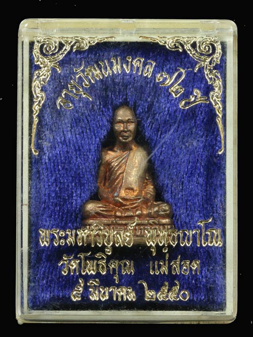 รูปเหมือนรุ่นแรก อายุวัฒนมงคล ๗๒ ปี พ.ศ. ๒๕๕๐ หลวงพ่อมหาวิบูลย์ วัดโพธิคุณ อ.แม่สอด จ.ตาก พร้อมกล่องเดิมๆ ด้านล่างมีอุดผงและเกศา