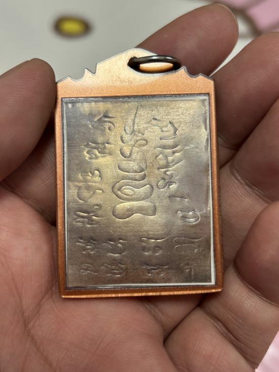 รูปหลวงพ่อกวย หลังแผ่นทองแดงจาร
