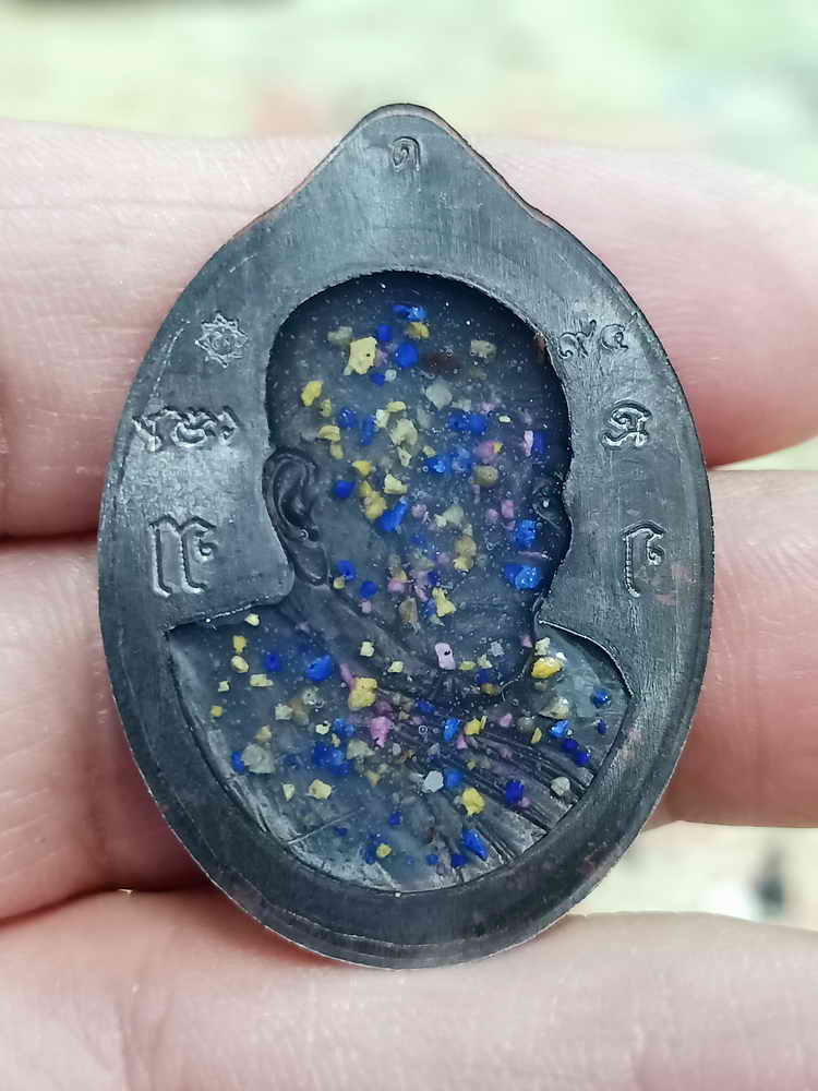 วัดใจ 100 เหรียญสรงน้ำ 9 รอบ วัดจัดสร้าง หลวงปู่อิ่ม วัดทุ่งนาใหม่ จ.นครศรีธรรมราช 2568 ทองแดงรมดำ หลังแบบปิดมวลสาร หมายเลข 94 กล่องเดิม |