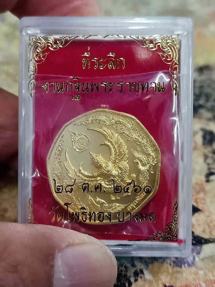 วัดใจ 150 G#4 เหรียญครุฑรักษา กฐินพระราชทาน 2561 หลวงพ่อวราห์ วัดโพธิทอง บางมด กรุงเทพ กะไหล่ทอง กล่องเดิม |