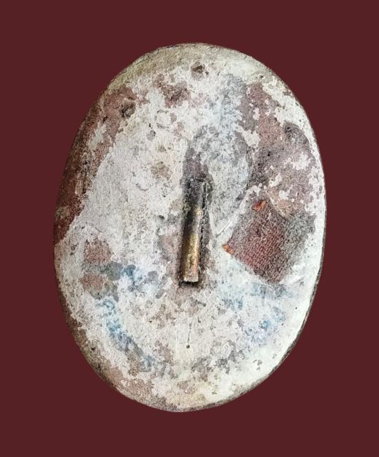 ล็อกเก็ตฉากขาวดำครูบาบุญชุ่ม ด้านหลังฝังมวลสารตะกรุดผ้าจีวร
