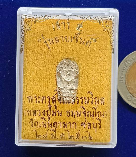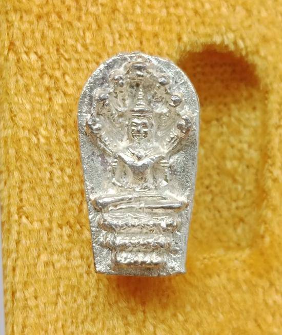 พระนาคปรกฉีดใบมะขาม เนื้อเงิน เสาร์ห้า รุ่น ลายเซ็นต์ หลวงปู่ม่น ธัมมจิณโณ วัดเนินตามาก จ.ชลบุรี ปี2536 มีโค้ด หมายเลข พร้อมกล่องเดิม ตามรูปครับ