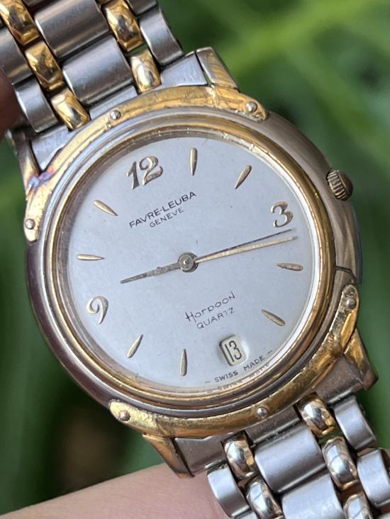 +++HOT!!! เปิดเครื่องมาถึงกับอึ้ง อ่านรายละเอียดก่อนนะครับ!!!! Favre-Leuba Genève Harpoon Two-Tone Silver Dial Quartz ตัวเรือนชุบทอง 18K Gold ห้ามพลาด!!!+++