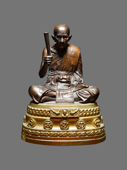 หลวงพ่อรวย วัดตะโก พระบูชา เนื้อโลหะรมดำ ฐานทอง รุ่นรวยเหลือล้น no.453 จำนวนการสร้าง 1,000องค์ (มูลนิธิหลวงพ่อรวยจัดสร้าง) สวยมาก ใต้ฐานฝังหัวเลสเนื้อทองทิพย์ |