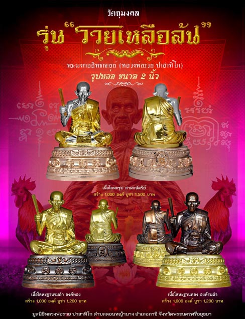 หลวงพ่อรวย วัดตะโก พระบูชา เนื้อโลหะรมดำ ฐานทอง รุ่นรวยเหลือล้น no.453 จำนวนการสร้าง 1,000องค์ (มูลนิธิหลวงพ่อรวยจัดสร้าง) สวยมาก ใต้ฐานฝังหัวเลสเนื้อทองทิพย์. |