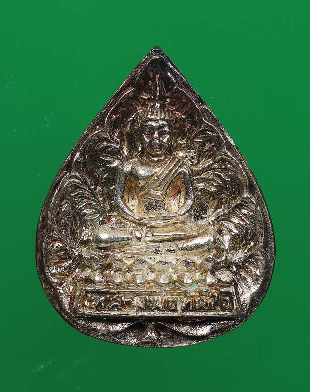 วัดใจ...เนื้อเงิน เหรียญหล่อใบโพธิ์หลวงพ่อทันใจ ปี2537 วัดพระธาตุช่อแฮ จ.แพร่ (กล่องเดิม)