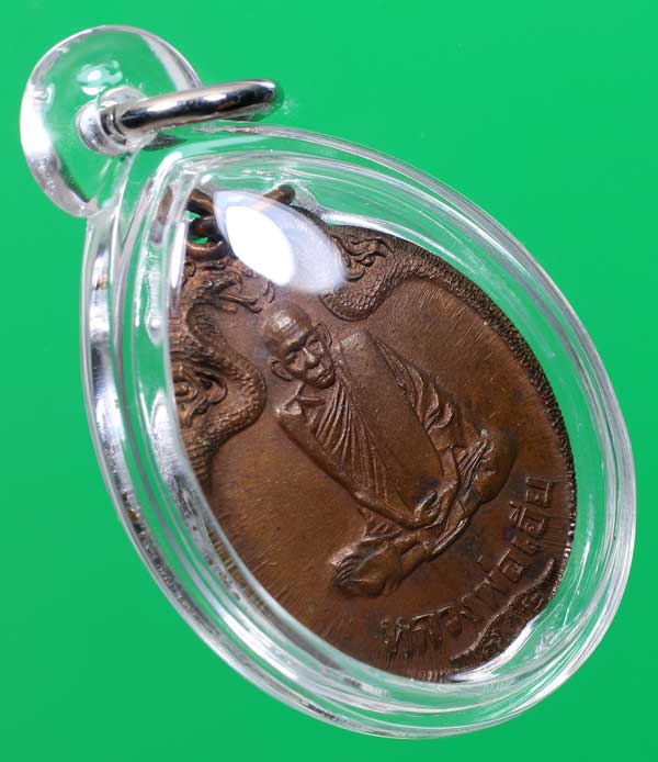 วัดใจ...เหรียญงูเล็ก หลวงพ่อเอีย วัดบ้านด่าน จ.ปราจีนบุรี ปี 2521 เนื้อทองแดง สวยเดิม (เลี่ยมอย่างดี)