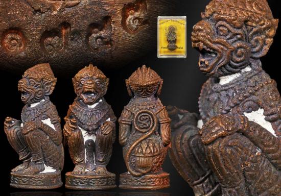 หนุมานไพรีพินาศ หล่อโบราณ เนื้อทองแดงสัมฤทธฺ์ก้นอุดผงฝังตะกรุด หมายเลข1755 ท่านก๋งเตื่อง เตชปญฺโญ จ.ตราด