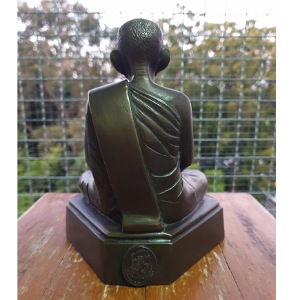 พระบูชาหลวงพ่อกวย พิมพ์ย้อนยุค ปี2552 ขนาดหน้าตัก 5 นิ้ว ใต้ฐานมีเหรียญหลวงพ่อกวย ย้อนยุค ปี 2539