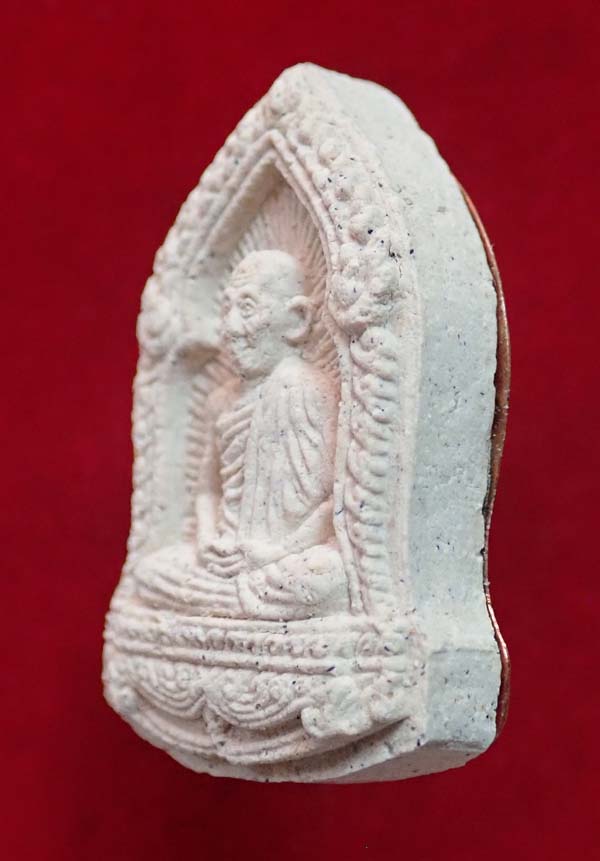 พระผงรูปเหมือน "ข้าวก้นบาตร" หลังแผ่นยันต์ทองแดง ลพ.เกษม เขมโก ปี ๒๕๓๕ (สร้างจากเนื้อผงผสมข้าวก้นบาตร)