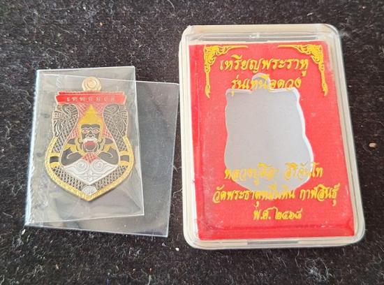 เหรียญพระราหูอมจันทร์ หลวงปู่ศิลา เมตตาอธิษฐานจิต รุ่นเหนือดวง เนื้ออัลปาก้าลงยา No.142 |