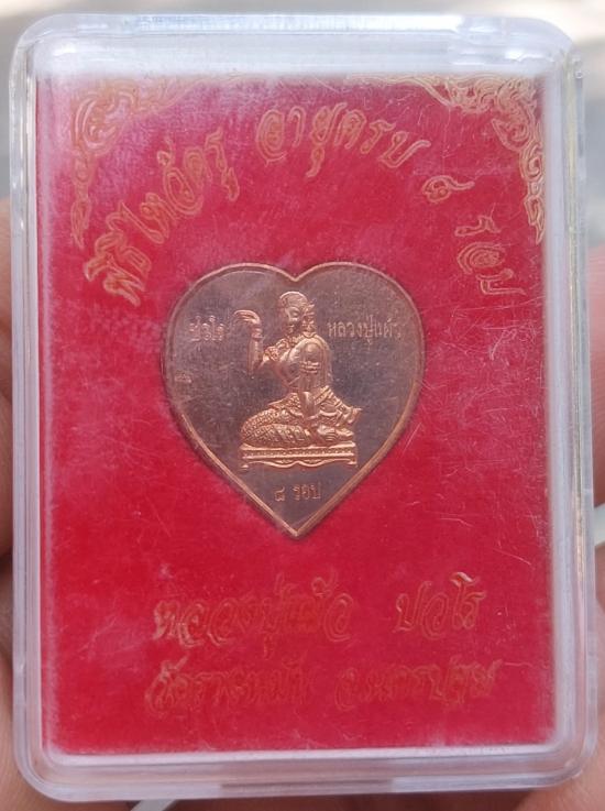เหรียญหัวใจแม่นางกวัก พิธีไหว้ครู อายุครบ ๘ รอบ หลวงปู่แผ้ว ปวโร วัดรางหมัน อ.กำแพงเเสน จ.นครปฐม ปี๖๒ |