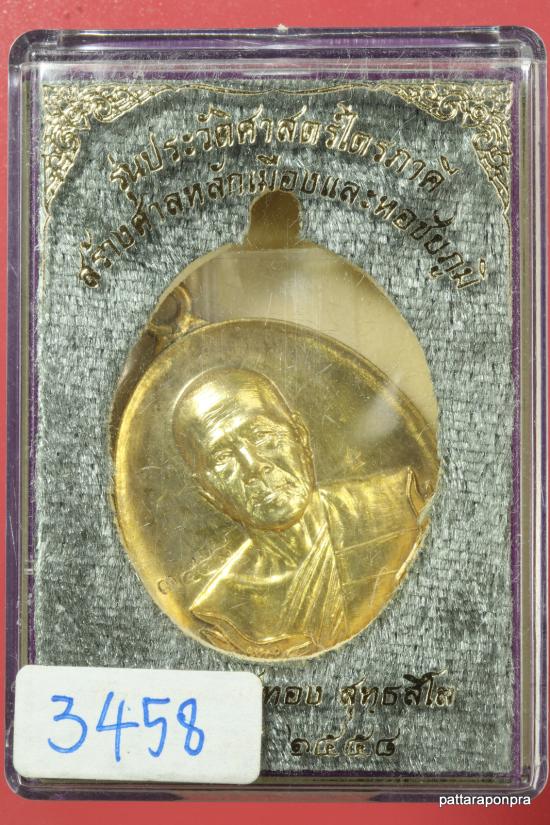 เหรียญหลวงพ่อทอง รุ่นประวัติศาตร์ไตรภาคี ปี 2558 เนื้อทองฝาบาตร หมายเลข 3458 |