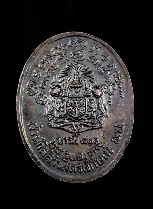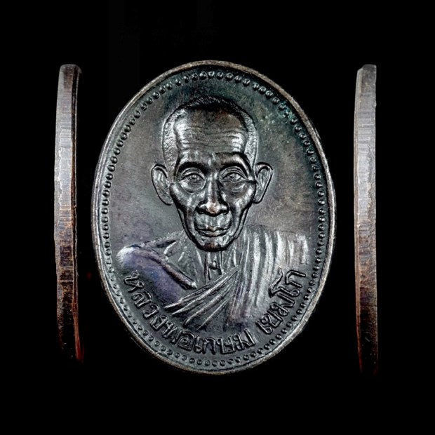 เหรียญหลวงพ่อเกษม เขมโก รุ่น บารมี 81 ปี 2535 เนื้อทองแดงรมดำ หลังตราโลห์ ตอกโค๊ต
