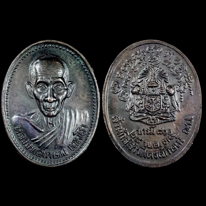 {{เหรียญหลวงพ่อเกษม เขมโก}} สุสานไตรลักษณ์ จ.ลำปาง รุ่น บารมี 81 ปี 2535 เนื้อทองแดงรมดำ