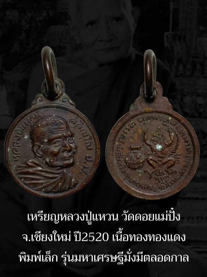 เหรียญ หลวงปู่แหวน วัดดอยแม่ปั๋ง จ.เชียงใหม่ เนื้อทองแดง