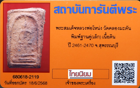 รายละเอียด พระสมเด็จฐานคู่ (พิมพ์เล็ก) หลวงพ่อโหน่ง วัดคลองมะดัน จ.สุพรรณบุรี สวยๆ + บัตรรับรอง G-Pra