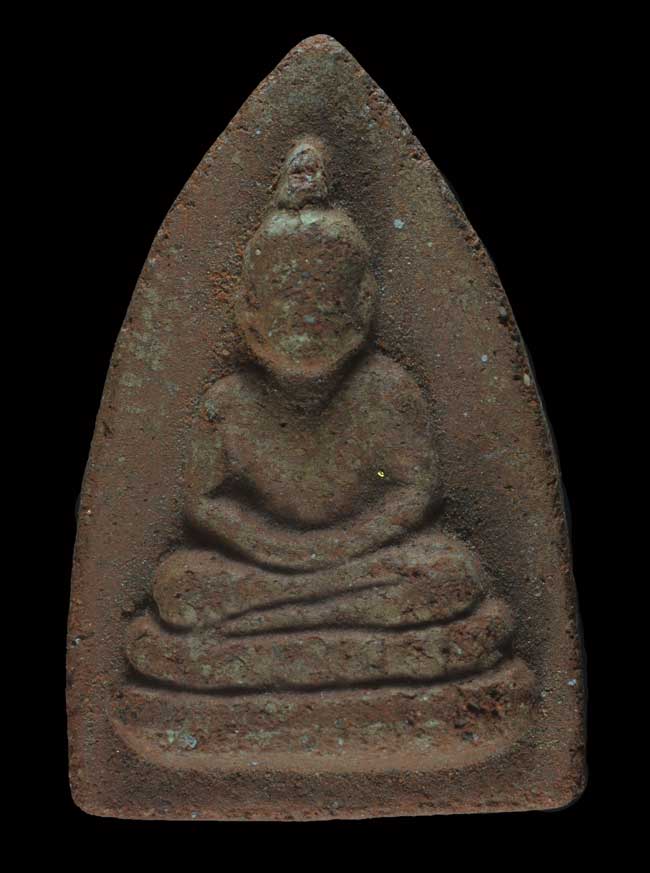 พระอรหังอังคีรส หลังปิ ยอดอุณาโลม หลวงปู่เฮี้ยง วัดป่า จ.ชลบุรี ปี 2495 เนื้อดินผสมผง พระยุคต้น |