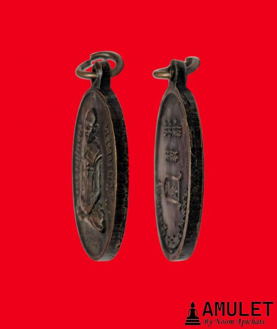 (เคาะเดียวแดง) เหรียญรุ่นแรก หลวงปู่หงษ์ พรหมปัญโญ วัดเพชรบุรี จ.สุรินทร์ ปี2541 เนื้อทองแดงรมดำ หลังยันต์จตุธาตุ |
