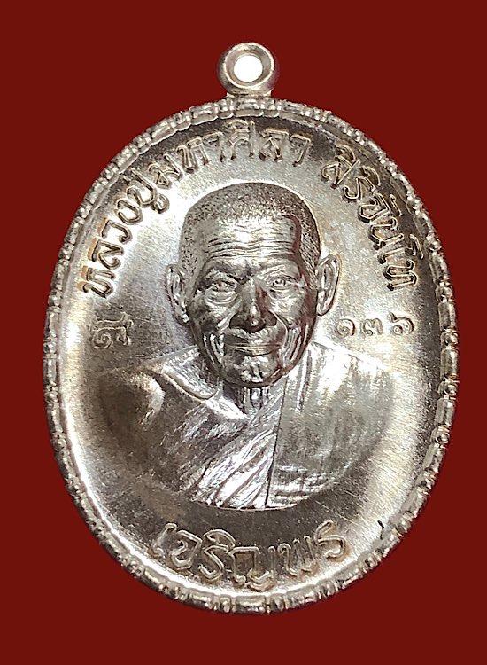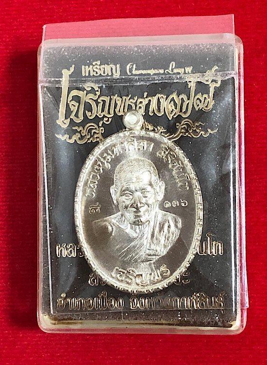 หลวงปู่มหาศิลา เจริญพรล่าง เนื้อนวะพลายเงิน ผิวสวยวิ้งๆ จมูก100 เลข136 กล่องเดิม