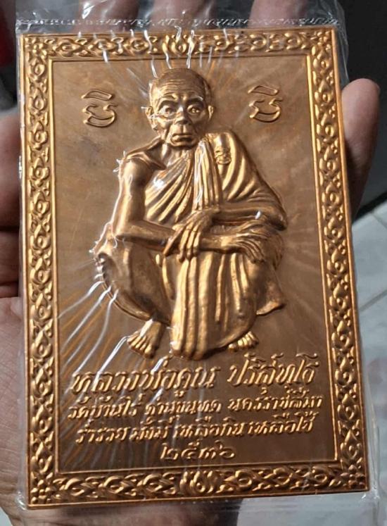แผ่นปั้มรูปเหมือน หลวงพ่อคูณ ขนาด 3.5x5.0 นิ้ว เนื้อทองแดง ถุงเดิม ปี36
