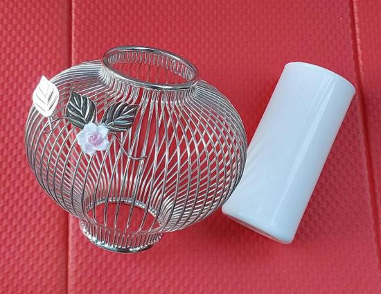 ด้านในมีแก้วหรือเซรามิกสีขาวขุ่นสำหรับใส่เทียนหรือหลอดไฟ