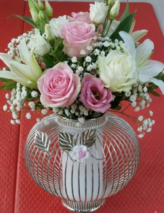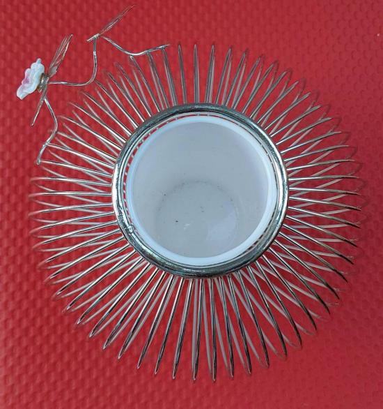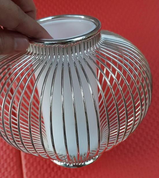 ลักษณะเป็นโครงโลหะสีเงินลวดลายซี่กรงคล้ายกรงนกหรือโคมไฟจีน