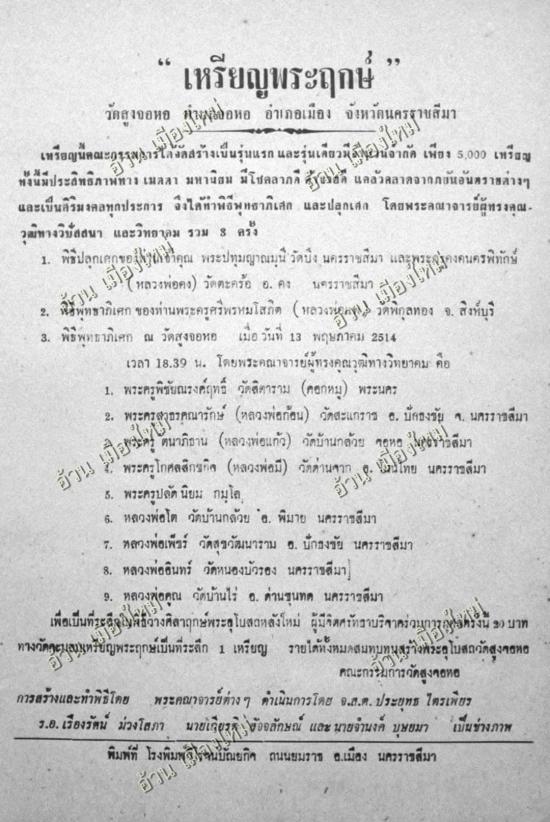| เหรียญพระฤกษ์ วัดสูงจอหอ จ.นครราชสีมา หลวงพ่อคูณ ร่วมปลุกเสก ( เนื้ออัลปาก้าขัดเงา กรรมการ ) พ.ศ.2514 ( จารยันต์อักขระ ห น้าเหรียญ ยานะยา ยานะยา , หลังเหรียญ มะอะ อุมะ ) |