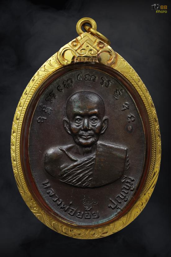 เหรียญหลวงพ่อย้อย วัดอัมพวัน พร้อมเลี่ยมทอง รุ่นให้ลาภคุ้มภัย พิมพ์ใหญ่ เนื้อทองแดง ปี2519 จ.สระบุรี