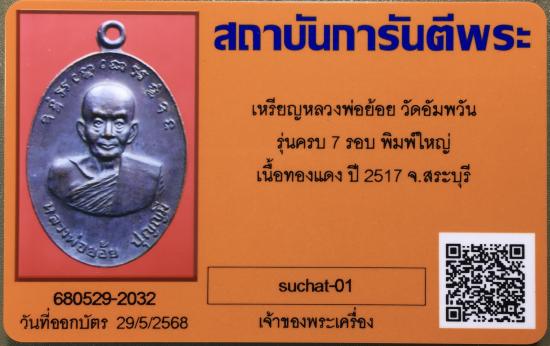 เหรียญหลวงพ่อย้อย วัดอัมพวัน รุ่นให้ลาภคุ้มภัย พิมพ์ใหญ่ เนื้อทองแดง ปี2519 จ.สระบุรี |