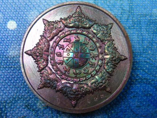 เหรียญปิดตาพังพะกาฬ รุ่นเหนือดวง รุ่นแรก พระอาจารย์ประสูติ วัดในเตา จ. ตรัง เนื้อ ทองแดงผิวไฟ ลงยาน้ำเงิน (---A33---)