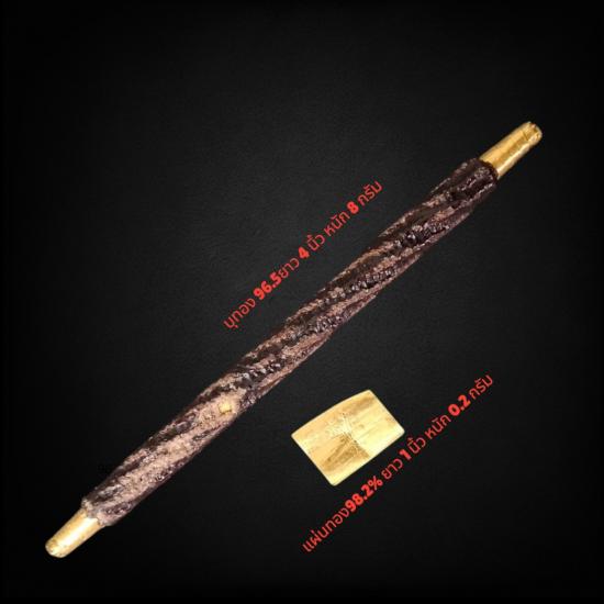 ตะกรุดหุ้มทองคำ 4 นิ้ว + แผ่นทองคำลงอักขระ 1 นิ้ว ไม่ทราบที่ รายละเอียดในภาพ