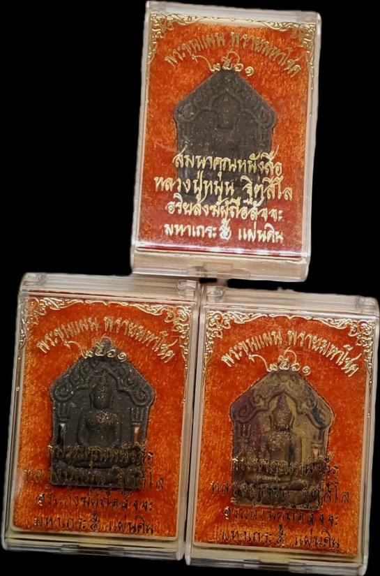 วัดใจ เคาะเดียว 180 3 องค์ พระขุนแผน พรายมหาโชค หลวงปู่หมุน พิมพ์ใหญ่ ฝังตะกรุด เงิน ทองแดง และทองแดงคู่ มวลสารหลวงปู่หมุน พิธีปลุกเสกใหญ่ จัดสร้างโดยมูลนิธิศิษย์หลวงปู่หมุน ฐิตสีโล |