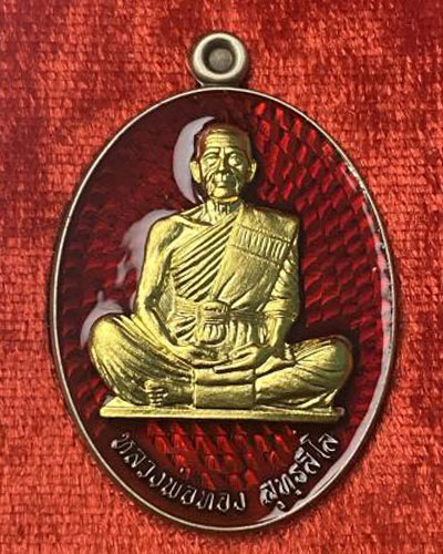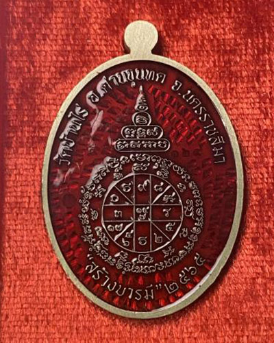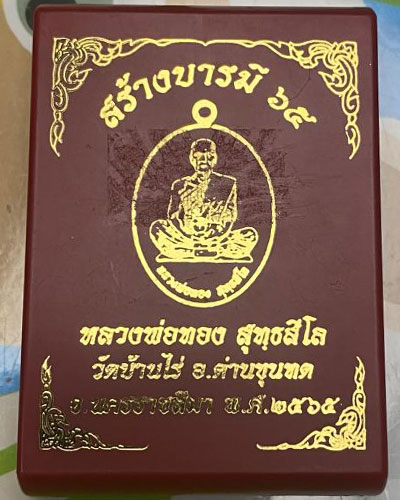 วัดใจ... เหรียญสร้างบารมี 65 หลวงพ่อทอง วัดบ้านไร่ เนื้ออัลปาก้าลงยาแดงหน้ากากทองทิพย์ เลขโค้ด ๑๒๔ กล่องเดิม