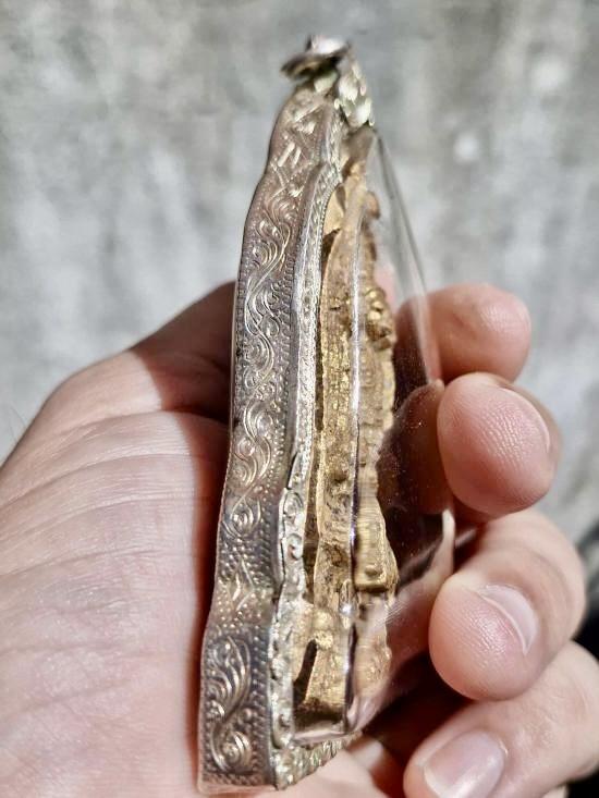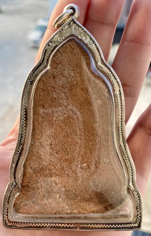 ชื่อพระเครื่อง !!เคาะเดียวแดง!! พระโคนสมอ เนื้อดิน ปางมารวิชัย (เลี่ยมเงิน)สายเหนียวแห่งเมืองอยุธยา
