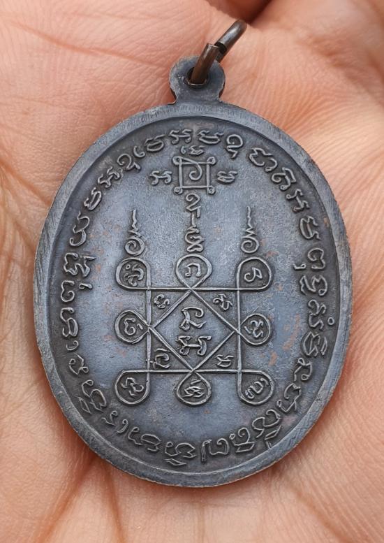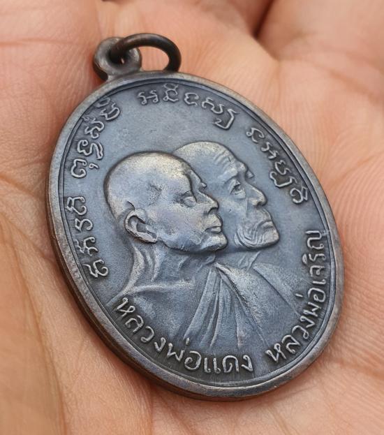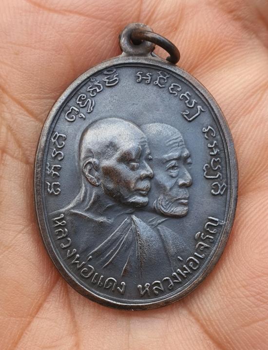 เหรียญโบสถ์ลั่น หลวงพ่อแดง หลวงพ่อเจริญ วัดเขาบันไดอิฐ บล็อควัวลาน ปี13 เนื้อทองแดงรมดำ |